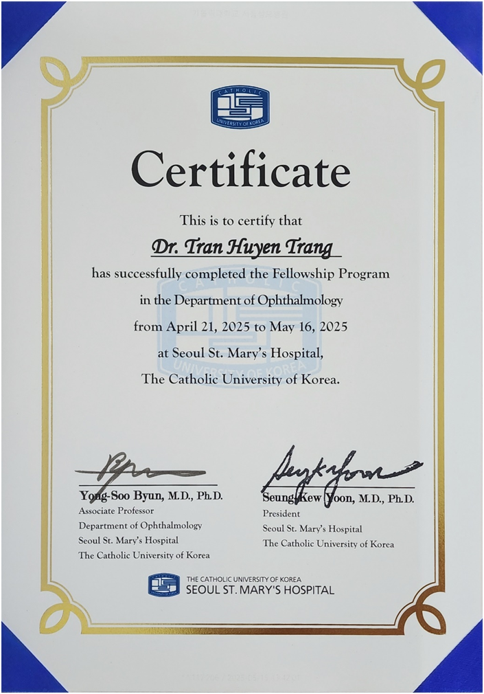 However, one limitation of the program was the lack of simulation-based or hands-on training opportunities. I initially chose Seoul St. Mary’s Hospital based on the information available on the ACS - Santen website (https://www.asiacorneasociety.org/index.php/country-data/seoul-st-mary-s-hospital-catholic-university-of-korea), which stated that hands-on surgical training would be available. This was a major factor that motivated me to apply. Unfortunately, after acceptance, I was informed that international observers are only permitted to observe and must sign an agreement to that effect. By then, it was too late to revise my choice.
